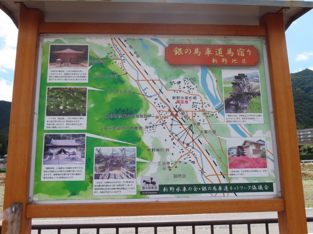 駅前のロータリーに車を回すと、「新野水車の郷」の看板が。
