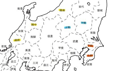 日本の古い地名の地図を見ると、「越前」「越中」「越後」、