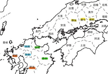(上総・下総については、瀬戸内経由で船で行くことを考えてください。)